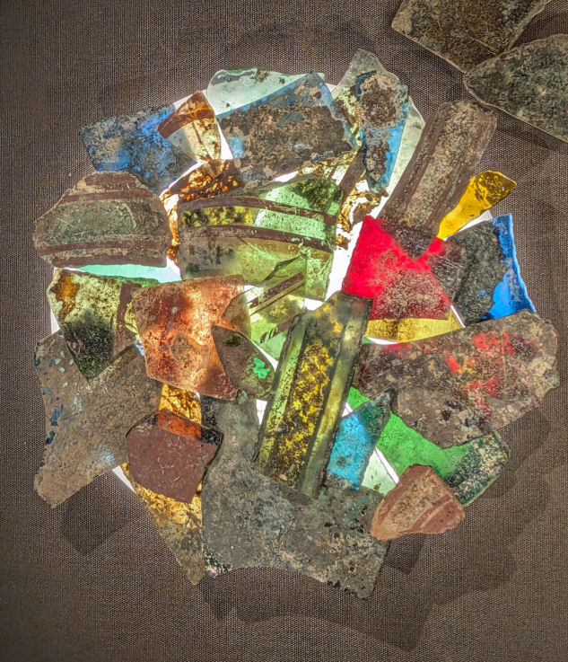 quirky treat. Some nice stained glass, including the pile pictured (right)