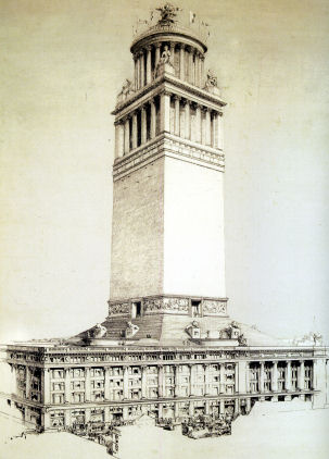Jonathan Glancey Lost Buildings The London pages in this book cover a lot of the same ground as some of the books above - the Euston Arch, The Adelphi, The Old London Bridge, Columbia Market, and such. But Glancey also takes us to sad architectural losses in Iran, Russia, America and Australia. The range is impressive, then, and the pictures are gorgeous - worth the price of the book in themselves. Which is just as well, as the text is ... well, weird. It's committed and often angry, yes, but it's also strangely hand-holdingly juvenile, like this was first intended to be a book for children, which seems unlikely. This is puzzling rather than a deal-breaker and this is still an essential book on the subject. It even stretches to places which never existed, like Atlantis, Gormenghast, Piranesi's prisons and Fritz Lang's Metropolis. Amongst the buildings never built is the huge tower addition to the Selfridges store in Oxford Street (pictured left) planned by Philip Armstrong Tilden in 1918. As Glancey comments: 'What fun.' |