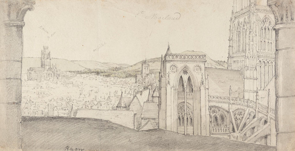 Rouen, the Cathedral and the City. Pencil and watercolour.
