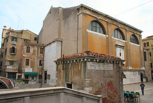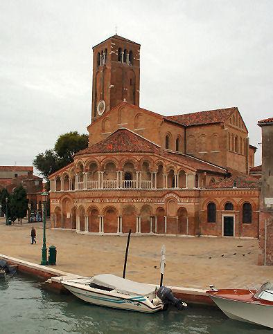 Sunday 21st I woke up before 8.00 this morning and as I was pootling around and waiting for 20 past I noticed a vivid red splodge on my pillow. After checking my head for leaks I realised that I must have squashed one of the mosquitoes that have been finding my arms and head so delicious these past few nights. Hah! I was having a bit of a dither about today. I had another day left on my vaporetto pass and originally planned to go to Murano but it occurred to me that a Sunday might not be a good day for this as there would be services, and so I might go all that way and not get to see the famous and reputed Giov Bellini painting. The other option was to boat it up to the Eastern part of Castello to photograph the last church I needed, which is so far east it's barely on land. I decided that Sundays, especially cloudy and cold Sundays, are days made for photographing church exteriors, so I might as well go and 'do' Murano. I caught the vap that went around through the Giudecca Canal and on around the East end of Castello, and I spotted the church I need to photograph (Sant'Elena) and even from the back it's clear to see...it's covered in scaffolding! So a wise decision to not trek out there, and a wasted journey thereby prevented. And then as the boat chugged in to the Ospedale stop, an even more fugitive church, Santa Maria del Pianto, which is always closed up and hidden behind a high wall, turns out to be visible partly from the water, and photographable. My cup verily runneth over! On Murano I photographed the lovely Basilica dei Santi Maria e Donato (see far below right) where a service was on, and then found the crumbling and disused Santa Maria degli Angeli. (This is all a mite confusing, as my list says that there's a church called Santa Chiara but doesn't mention Santa Maria degli Angeli.) By the time I got to San Pietro Martire the morning service was over, which meant that the believing people were leaving, and other people with cameras and guidebooks were drifting in. So did I. (The door I drifted in through is pictured above right.) The outside is plain and barnlike, but the interior is impressively spacious and tall, with a deep chancel and side chapels. The ceilings are wooden and the walls have painted friezes over the arches and below the roof line, like in Santo Stefano. There are lots of big chandeliers, of course. Two huge paintings face each other across the aforementioned deep chancel, and there are paintings ranged around the walls, except where the famous Bellini should be, the one I had looked forward to seeing for... I ask where it is, and am told that it's gone to Rome for the big winter Bellini exhibition. Sigh! Walking back to catch a vap I spot the cute little building (right). ![]() I get off the boat at Fondamante Nove and head for the nice pizza takeaway place up behind San Zanipolo. I sit and eat my mushroom calzone behind the church, admiring the crumbling house whose garden is the area of grass at the East end of the church, complete with tasteful stone features. On the walk back via the Rialto, I pick up a limone and fior di latte gelato somewhere on the way to San Giacomo dall'Orio and a very fruity apple tart thing, in the campo of the same name. In the evening I decided to use my vap ticket to get me and my laptop to the internet point with less effort, so I caught a no.1 from the bus station to the Ca' d'Oro. The internet place was closed when I got there so I set up on the steps to the bridge outside, but then the owner arrived. After uploading the above and checking my e-mail I got talking to him. I'd mentioned how expensive the cybercafes were in Venice - the 7 Euros an hour I was paying him being about five times what you'd pay in London. This got us onto how expensive everything is in Venice, including rents. He said that he had friends who were well-paid professionals, but had to live in multi-occupancy flats like students. Public transport, even for residents, is shockingly expensive, even worse than London, and if you need a toilet! OK, you can go in a bar but who wants to pay for an overpriced coffee every time you want to pee? This got us onto the growing tourist hoards against declining residents thing, and what can be done. The suggestion that all visitors should pay a fee so that they can't - shock, horror - visit without spending money is just too much like pricing poor people out of Venice. No easy answers, but lots to be pessimistic about. After dropping my laptop back at the hotel I headed off into Campo Santa Margherita and bought a slice of pizza verdura and sat and ate it watching the world and his small dog and child on a bike go by. Grom, a new gelati chain that a friend in Florence had recommended has opened a branch in Campo San Barnaba. They're a bit more expensive than the going Venetian rate, but judging by my pairing - raspberry and extra dark chocolate - worth every euro. It was lovely. Fortified I took a wandering route back and realised that I 'needed' to find somewhere to get something to nibble with my evening tea. At 8 0'clock on a Sunday evening I wasn't holding out much hope, but found a small food shop open. As I waited behind a woman having some meat sliced I noticed in the fridge that the mineral water was 85 cents! This was a local's shop! When the woman had left, leaving a lovely waft of garlic sausage, I'm not too veggie to admit, I asked for one of the strudels from the case on the counter. And it was 1 euro - truly an unshocking price. I noticed some lost-cat posters on his counter and so we got into the other Venice conversation - where have all the cats gone? He was a firm believer in the Chinese restaurant theory, saying that cats, and small dogs, were being stolen to appear on menus in the city. I've heard this one before but put it down to melodrama and/or racism, but he was adamant, saying that the cats can hardly run away, or be run over by a car. I'm not so sure, if only because I've never seen a C