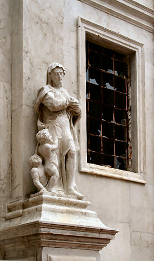 Tuesday 23rd I've desisted with the whinging about my hotel, you will have noticed. The Fawlty Towers thing was wearing a bit thin, even for me. But I have to say that this morning, when he brought me my breakfast, Basil said buon giorno. The first polite greeting I've had from him since I arrived. It may just be me, as I hear him being friendly to other guests and people on the phone. Maybe I remind him of the man who stole his wife, or daughter, or something. Today I'd set aside for local churches, and I warn you I visited seven this morning! I started with San Simeon Grande with its pleasingly rough-looking original columns, it's asymmetric layout and the Tintoretto Last Supper that looks unfinished, as well as like many hands were involved. The chapel to the right of the chancel has some nice 18th C? frescoing on the ceiling that's considerably corroded lower down. A reclining statue of the saint himself that Ruskin made some typically waspish comment about could not be found by me. San Zan Dagola next, the church of Headless Saint John. Old, dark and sparsely decorated, this one is 11th Century with very few later additions, a ships-keel ceiling, and a nicely weathered look. It re-opened in 1994 after having been closed for twenty years. It has painted walls and bits of archaic-looking fresco discovered during the restoration. A trek over to the Rialto to look inside San Silvestro, a very unarchaic church mostly dating from the mid-19th Century when it was rebuilt in a relatively unembellished neoclassical style. It has a flat ceiling painted with coffering. There's a Tintoretto Baptism of Christ opposite an appealingly bright sub-Bellini St Thomas a Becket Enthroned. It's by Girolamo da Santacroce from 1520, but with a couple more dingy saints added in the 19th Century. Each of these paintings is too small and the wrong shape for the spaces they inhabit. Opposite the church entrance is the house where Giorgione died of the plague in 1510. San Giacomo di Rialto is hemmed in by the market bustle. It's a dinky little Greek-Cross shaped church with some charm, but no real art, which is not the problem for San Giovanni Elemosinario which is also Greek-Cross shaped and also continues the day's classical thing. The art here's better with a bright Pordenone-frescoed cupola and a Titian altarpiece of the church's name saint, St John the Almsgiver. This church also had the keenest and most communicative Chorus attendant I've ever had the pleasure of chatting with. She not only sold me a very tasteful Chorus canvas book-bag, she passed on washing and ironing instructions (30 degrees and inside-out) and told me that they are made by prisoners in Santa Maria Maggiore, the church-attached prison just west of Piazzale Roma. Feeling hungry and a bit churched out I stopped for a slice of aubergine-topped pizza from a place called Pizza 2000, which had locals queuing in it, which is always a good sign. As I was quite near San Giacomo dell'Orio at this stage I thought I'd squeeze this one in before my afternoon rest. This is another Santa Croce sestiere church with the ancient thing going on, with more old columns and capitals, and the asymmetrical theme too. It has some surprising spaces, like the opened-out right side, some odd little chapels, and two sacristies. Also surprising is the Chapel of the Holy Sacrament, a sudden burst of 17th Century decorative overkill and balustrades and a painted dome. One sacristy is full of Palma il Giovanes -the church has 12 paintings by the prolific little... There's also a Lotto altarpiece, The Madonna and Four Saints, though, and a Veneziano painted crucifix. There's a small square and easily-missed Veronese is a dingy little side chapel. But the weirdest painting here, and maybe in the whole of Venice, is the deceptively innocently named Miracle of the Virgin by Zompani. What it actually shows is a chap who has run up and attacked Mary's funeral procession, only to find himself miraculously thrown to the ground with his hands ripped off and still attached to the coffin. My guidebook tells me that this painting also features in David Hewson's novel Lucifer's Shadow, as does another bizarre painting I found on Saturday in San Cassiano. ![]() ![]() To add to the day's weirdness quota I bought an almond pasty thing (above) on my way back to the hotel, only to find it contained chocolate paste. I nearly took it back, but ate it instead. Not weird, but tempting nonetheless, was one of those shops selling printed stuff I found in Campo Santa Maria Mater Domini. These shops vary in taste and tackiness but in Grafiche Ellemme I bought four very tasteful cards, a bookmark and a packet of bookplates. The authentic smell of ink in the shop inspires confidence in itself. |